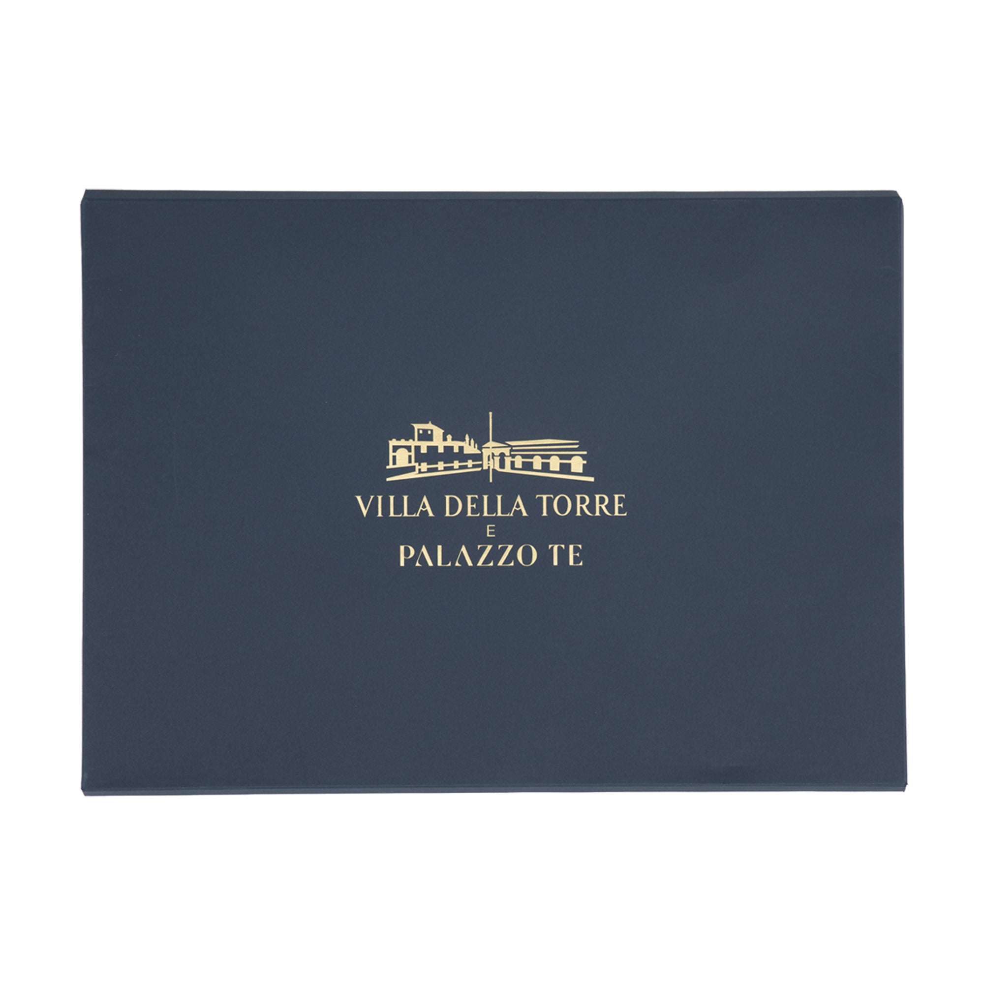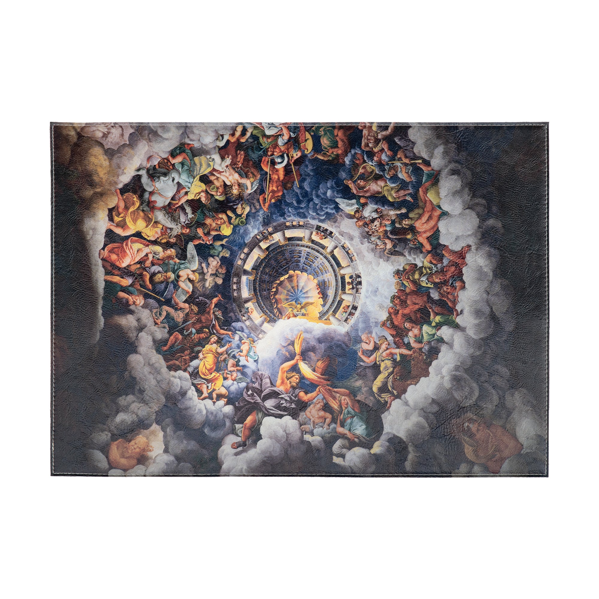 Placemat and coaster in eco-leather with visible stitching. The placemat and coaster depict the fresco of the Chamber of Giants in Palazzo Te.